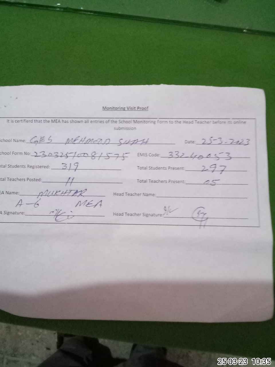 | EMIS Code: 33240053 | Name of School: GES MAHMOOD SHAH | |||