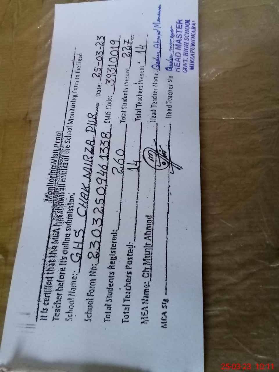 | EMIS Code: 39310019 | Name of School: GHS MIRZA PUR | |||