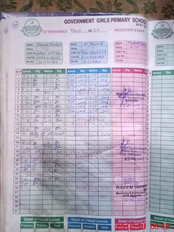 | Name: AS**** SH**** Designation: (School Headmaster's/Headmistress's) PST Phone/Cell Number: 03**** |