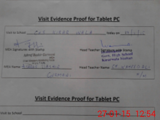 | Attendance Register | Head Teacher | MEA with School | Visit Proof |