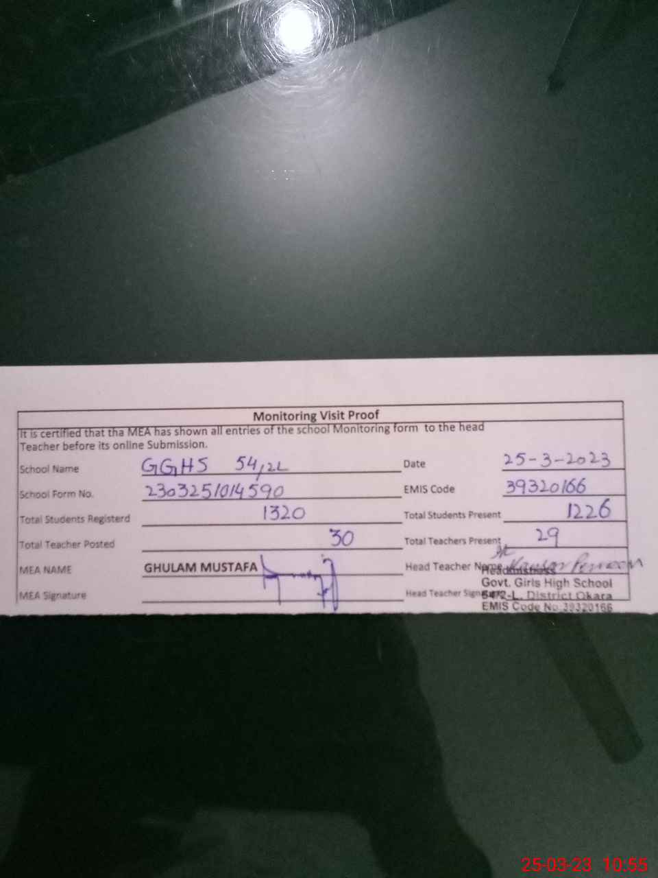 | EMIS Code: 39320166 | Name of School: GGHS 54/2-L | |||