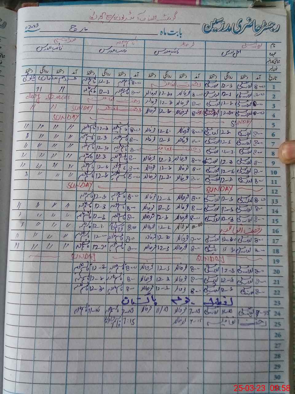 | Remarks (Use Separate Page if Required): Afternoon shift students attendance register not maintained for the month of March | |||||