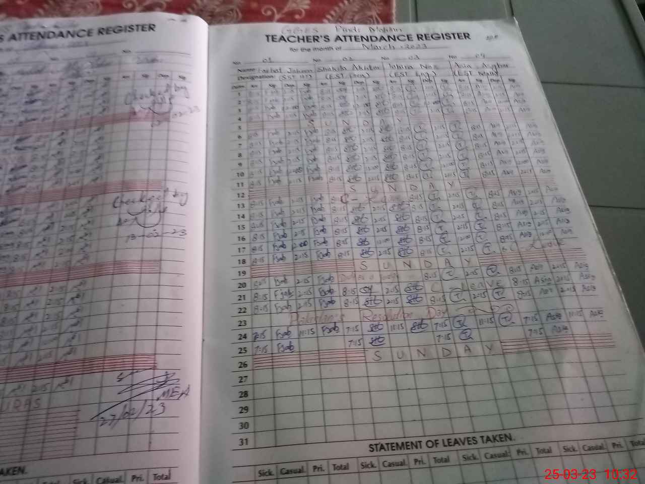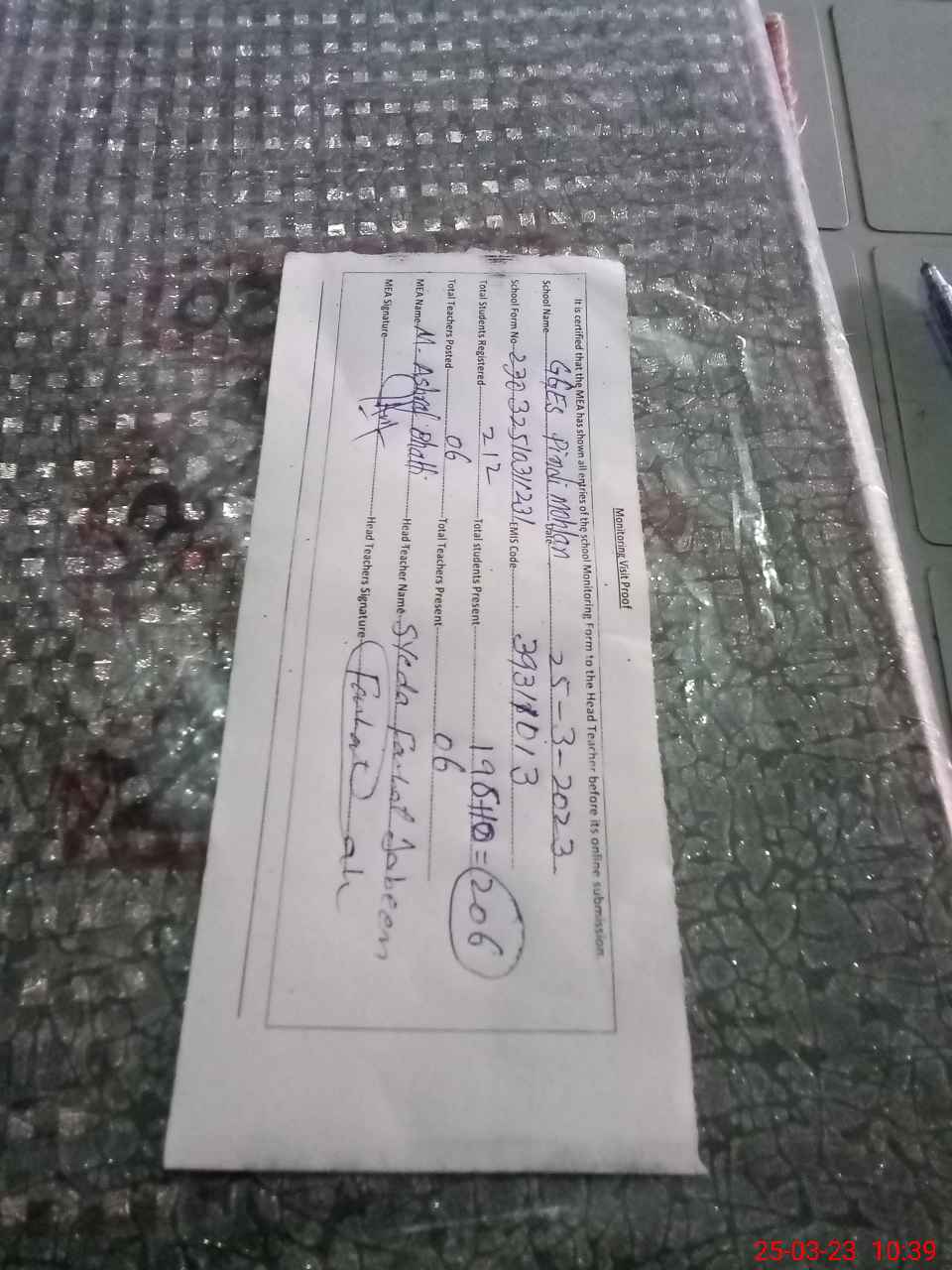 | Attendance Register | Head Teacher | MEA with School | Visit Proof |