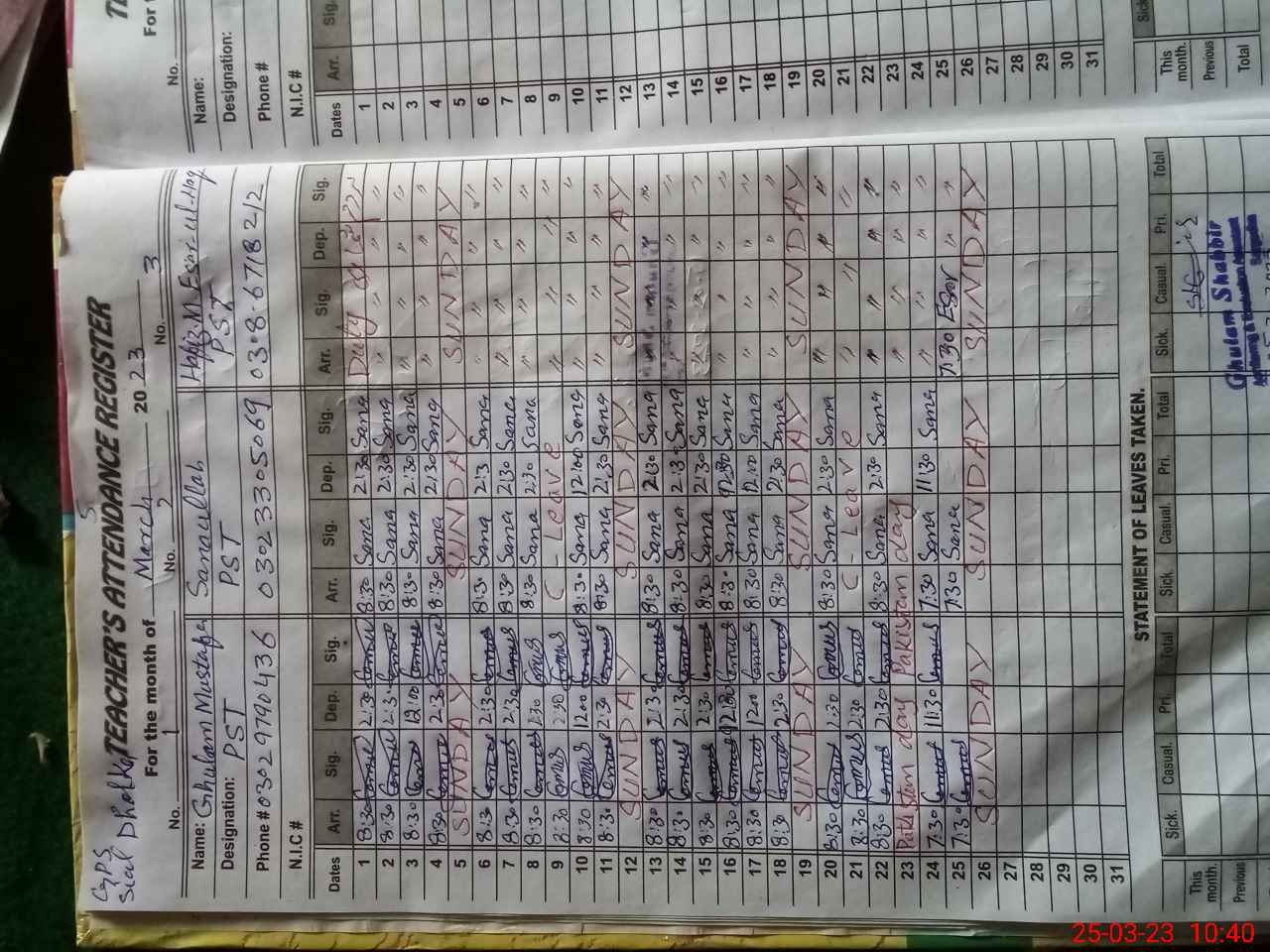 | Name: GH**** MU**** Designation: (School Headmaster's/Headmistress's) PST Phone/Cell Number: 03**** |