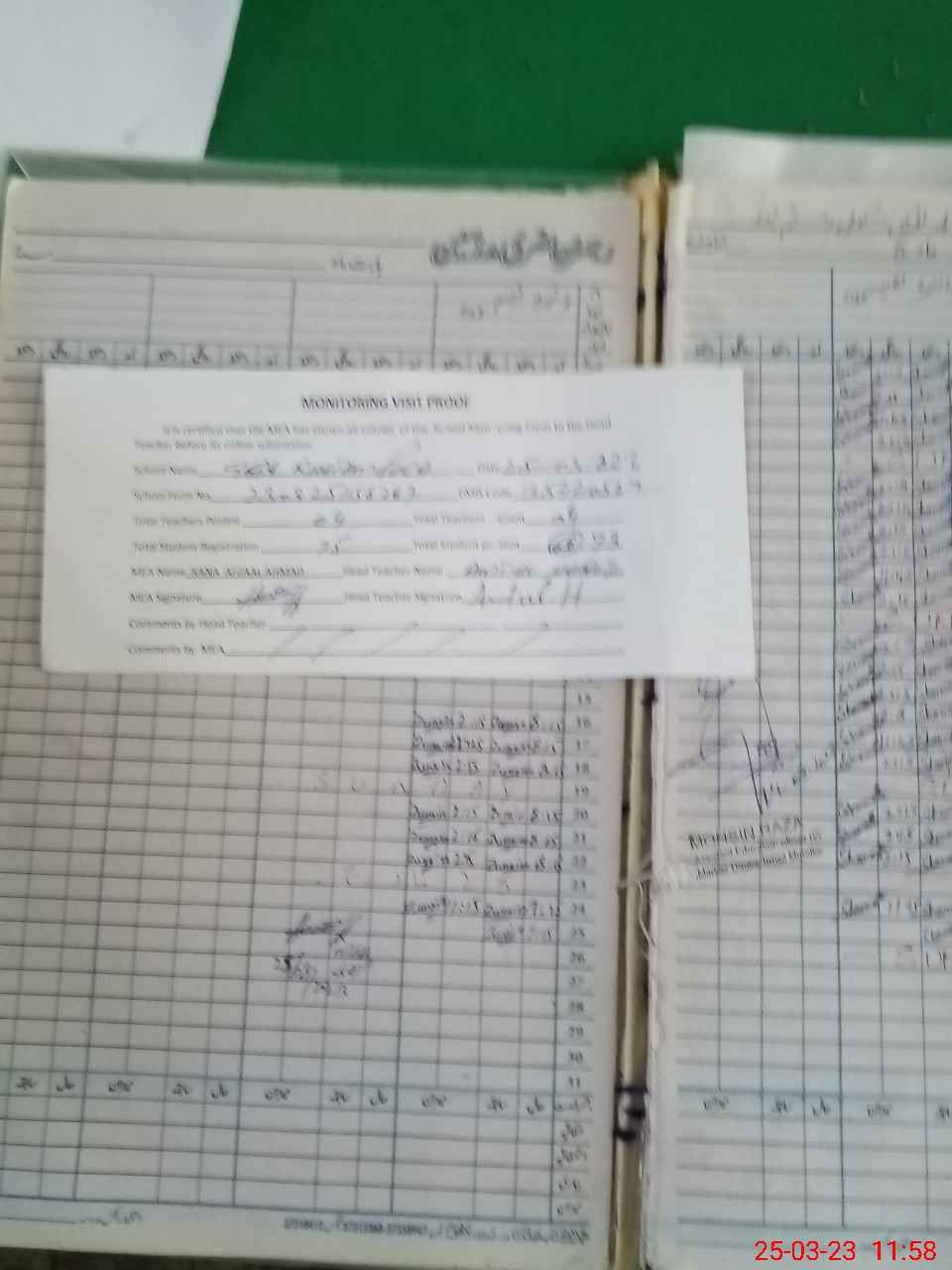 | Attendance Register | Head Teacher | MEA with School | Visit Proof |