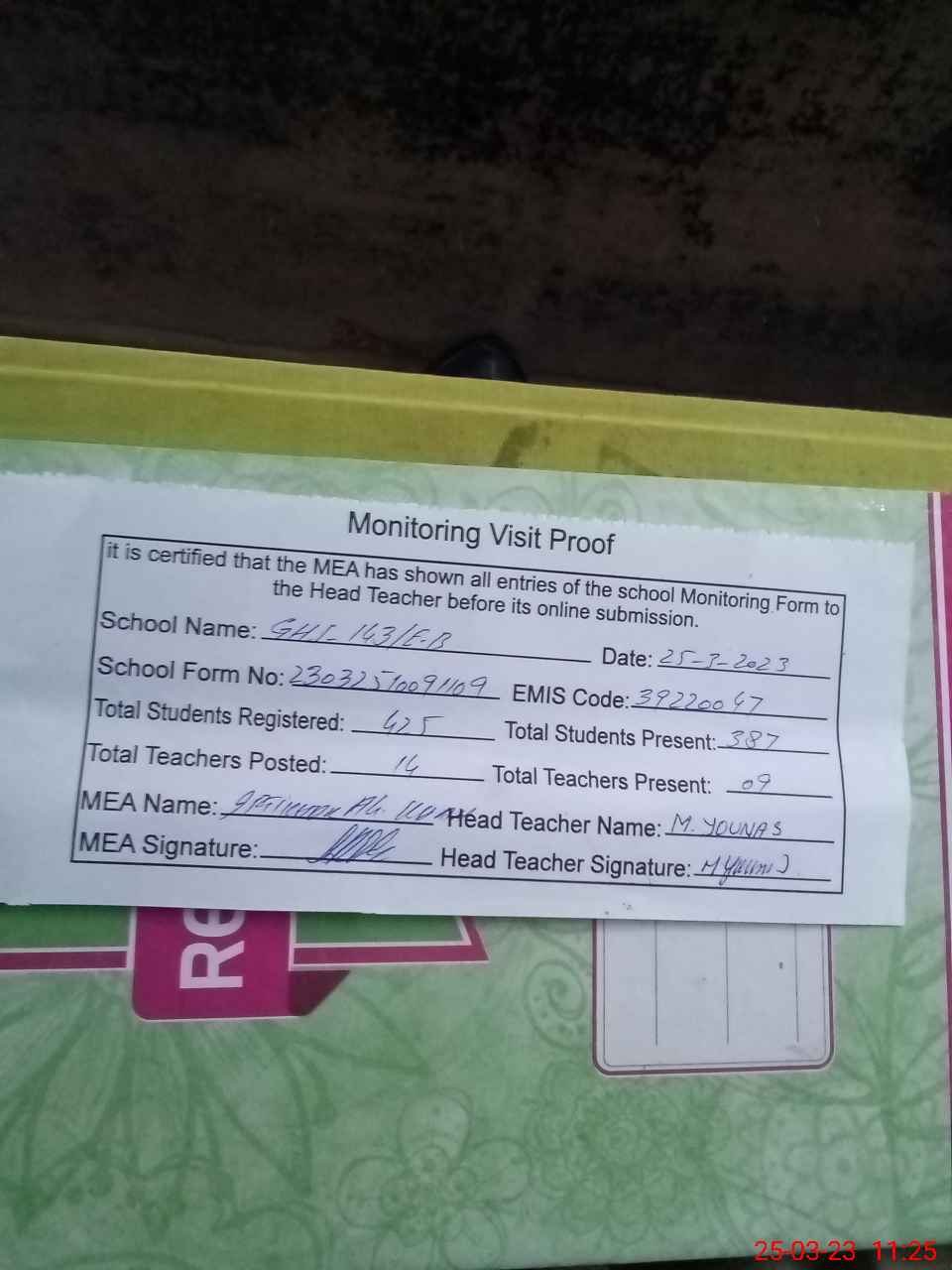 | EMIS Code: 39220047 | Name of School: GHS 143 EB PO 143 EB | |||
