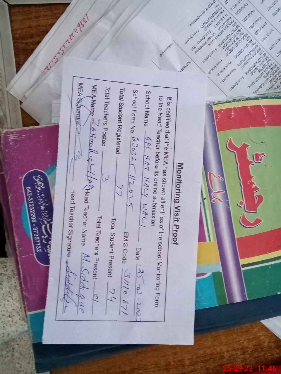 | EMIS Code: 31110671 | Name of School: GPS KAT KALY WALI | |||