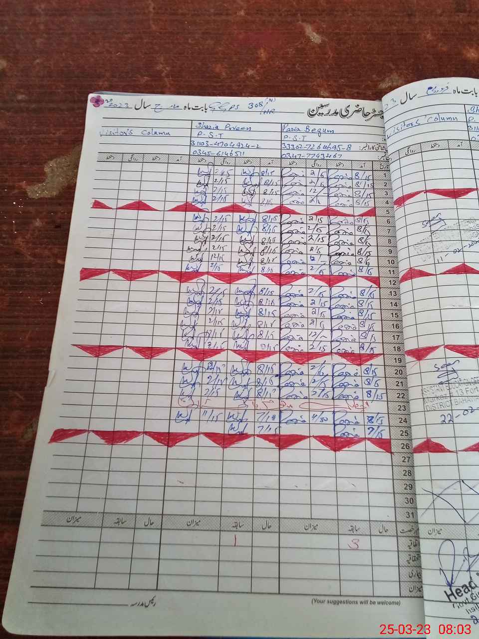 | Name: Sh**** Pe**** Designation: (School Headmaster's/Headmistress's) PST Phone/Cell Number: 03**** |