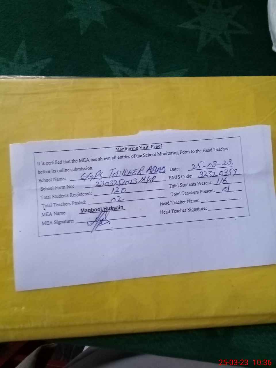 | EMIS Code: 32320359 | Name of School: GGPS TOUQEER ABAD | |||