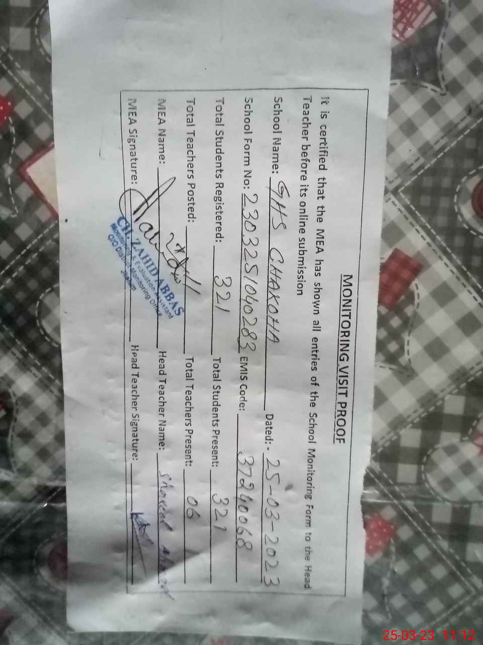 | EMIS Code: 37240068 | Name of School: GHS CHAKOHA | |||