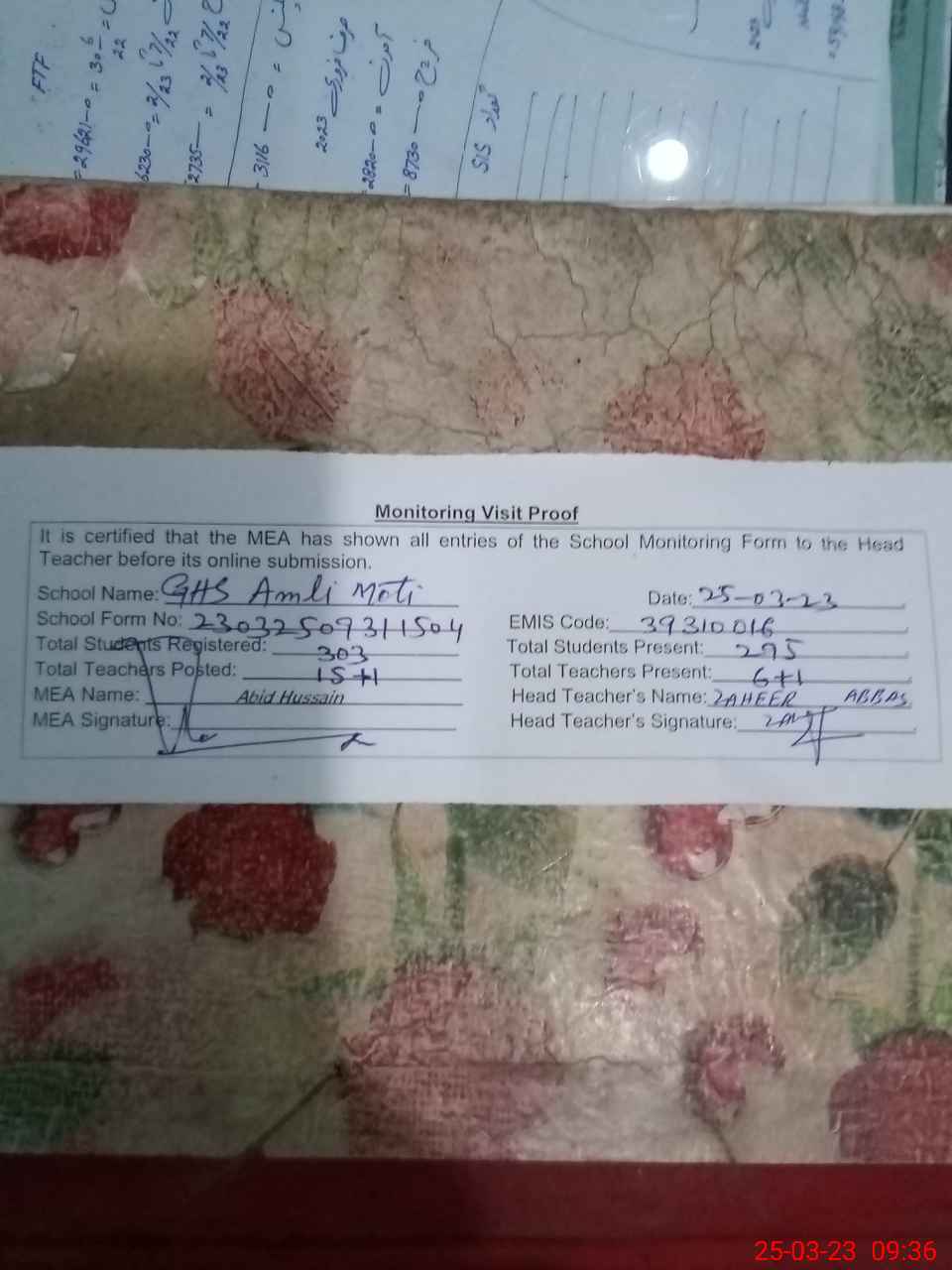 | EMIS Code: 39310016 | Name of School: GHS AMLI MOTI | |||
