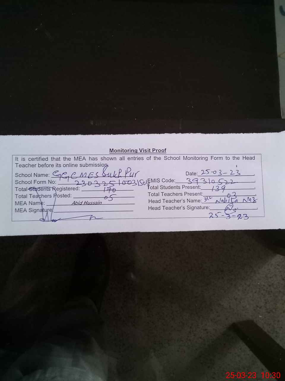 | EMIS Code: 39310522 | Name of School: GGCMES SUKH PUR | |||