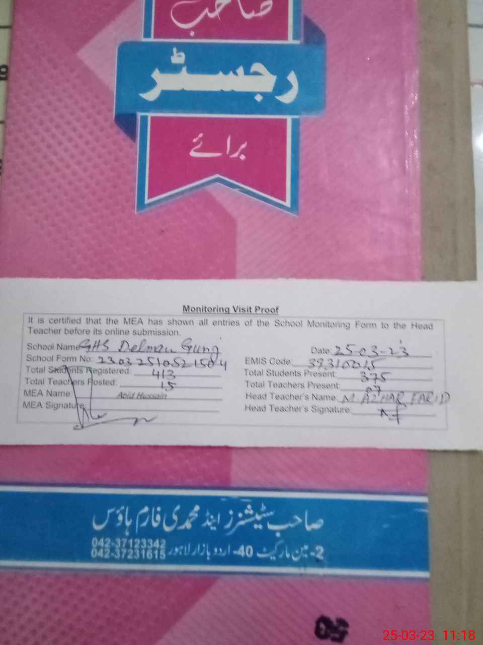 | EMIS Code: 39310015 | Name of School: GHS DELMAN GUNJ OKARA | |||