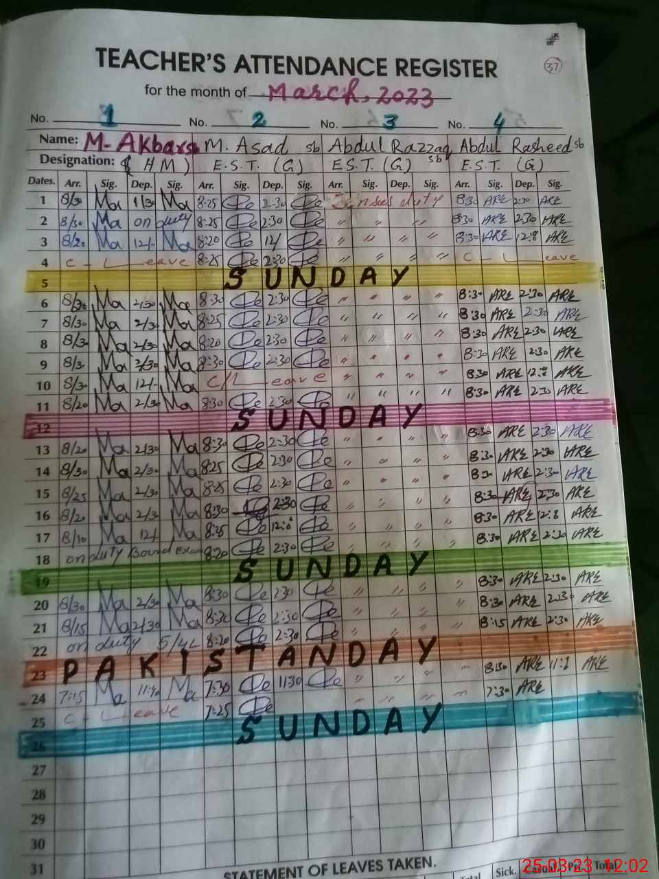 | 35**** | Mu**** Zi**** Ul**** | PST | Regular | 2 | 0 | 0 | 0 | 0 | 0 | 0 | 0 | 2 | Casual |