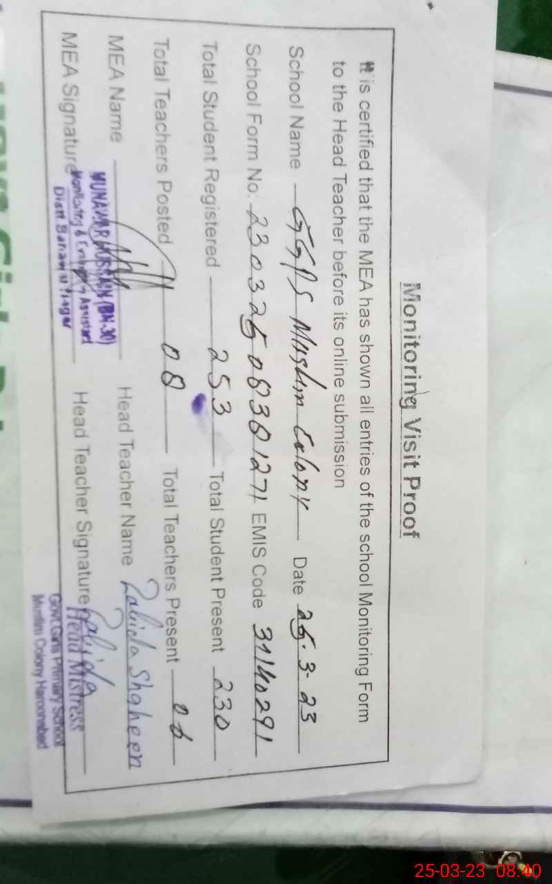| EMIS Code: 31140291 | Name of School: GGPS MUSLIM COLONY HAROONABAD | |||