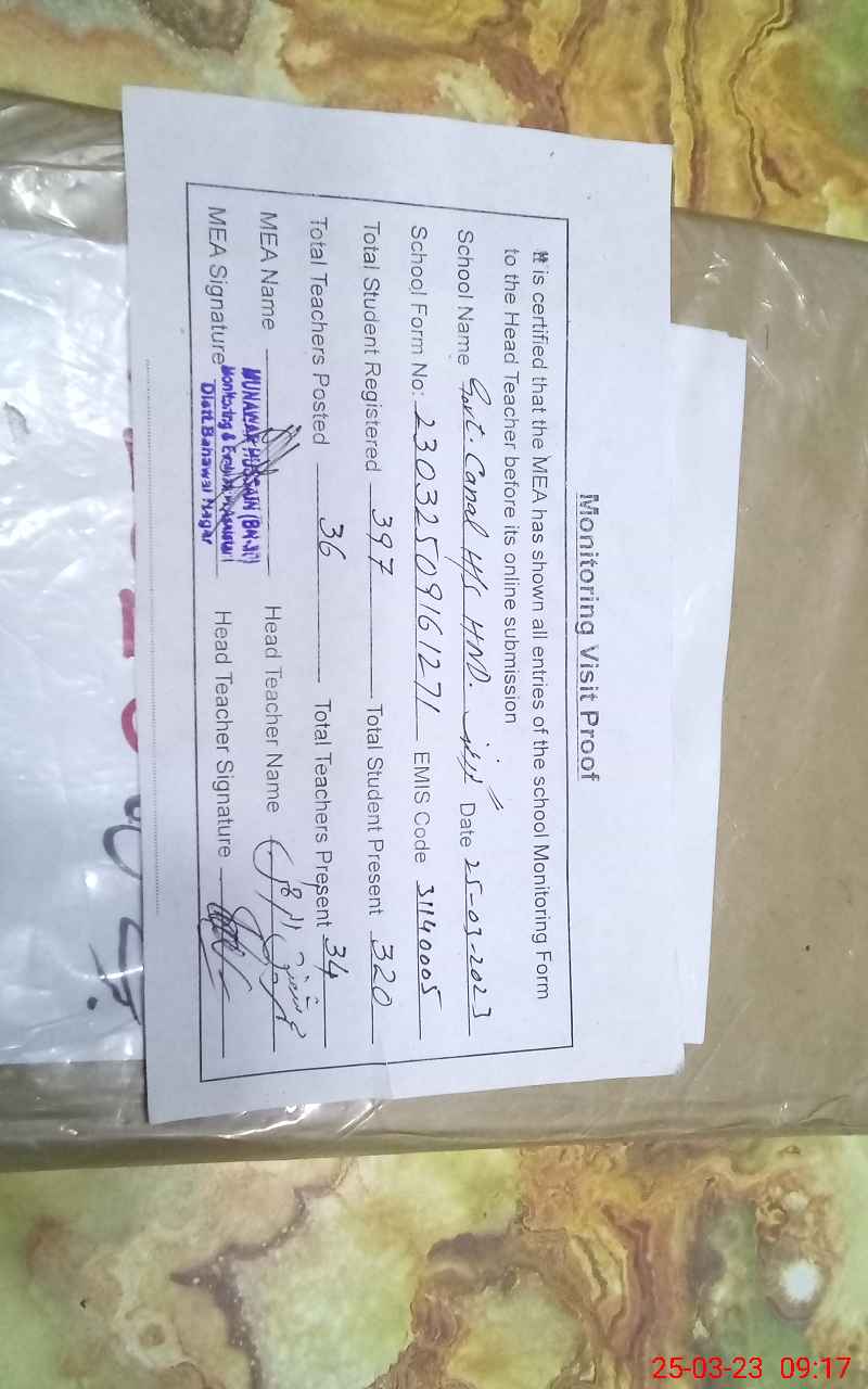 | EMIS Code: 31140005 | Name of School: GHS CANAL HAROON ABAD | |||