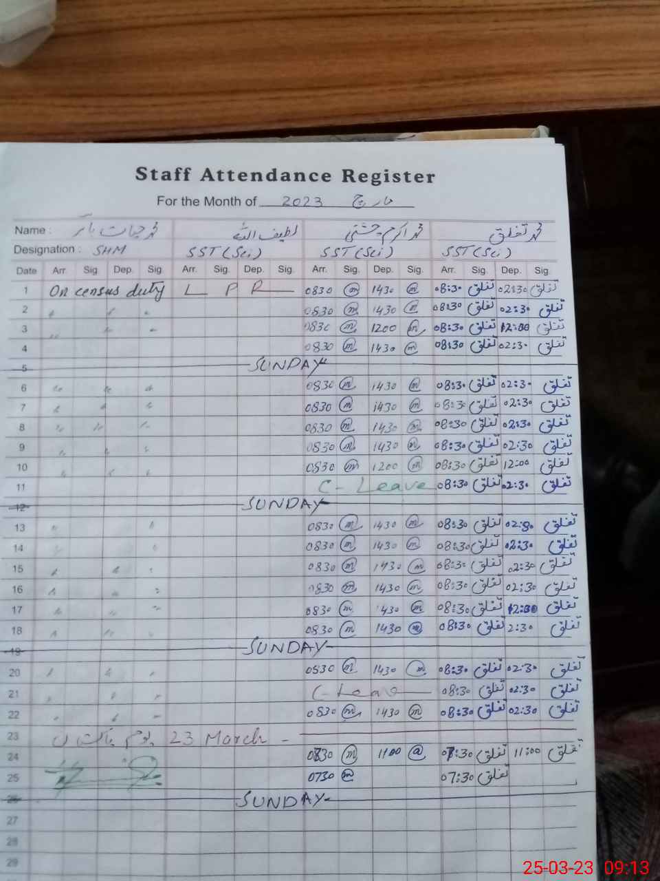 | CNIC | Full Name | Designation | R/C | Absence During Last Calender Month |
