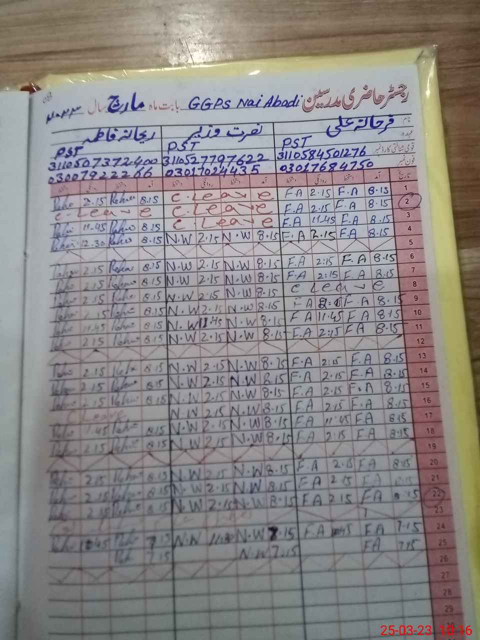 | Name: FA**** AL**** Designation: (School Headmaster's/Headmistress's) P S T Phone/Cell Number: 03**** |