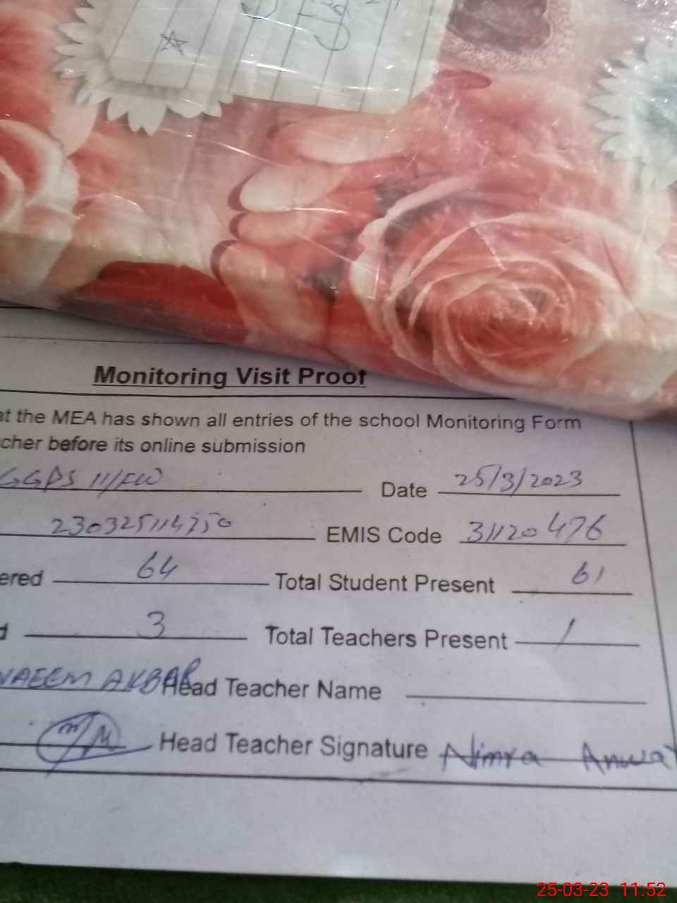| EMIS Code: 31120476 | Name of School: GMPS CHAK NO 11/FW | |||