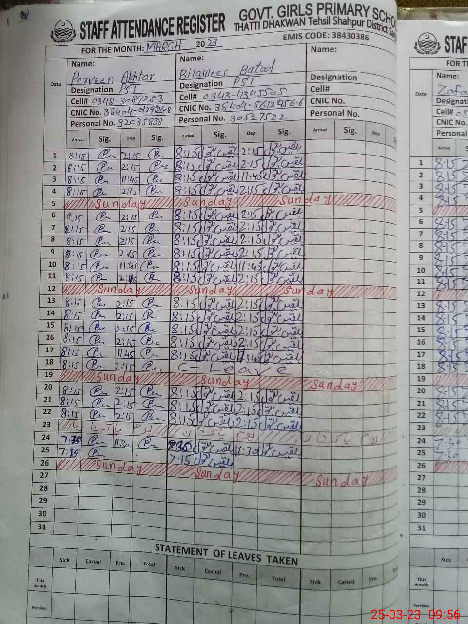 | Name: PA**** AK**** Designation: (School Headmaster's/Headmistress's) PST (Sc-Math) Phone/Cell Number: 03**** |