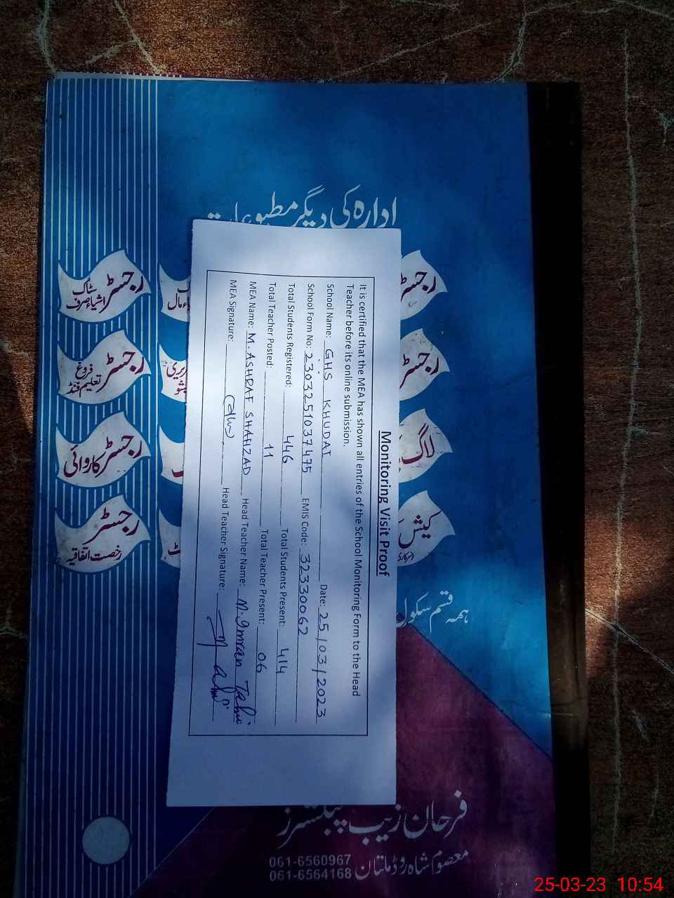 | EMIS Code: 32330062 | Name of School: GHS KHUDAI | |||