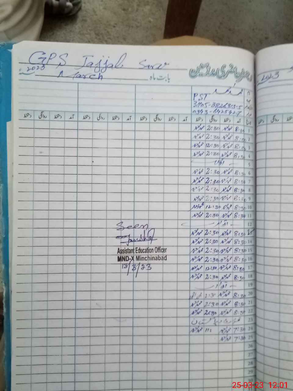 | Name: MU**** AH**** Designation: (School Headmaster's/Headmistress's) PST Phone/Cell Number: 03**** |