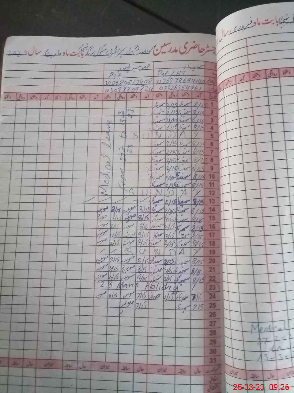 | Name: So**** Za**** Designation: (School Headmaster's/Headmistress's) PST Phone/Cell Number: 03**** |