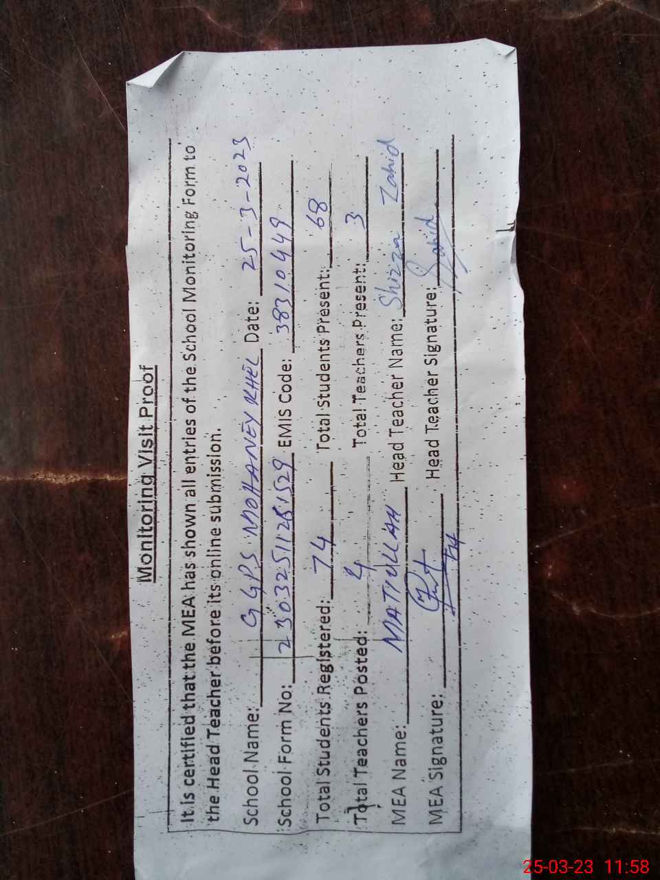 | EMIS Code: 38310449 | Name of School: GGPS MOHANEY KHEL | |||