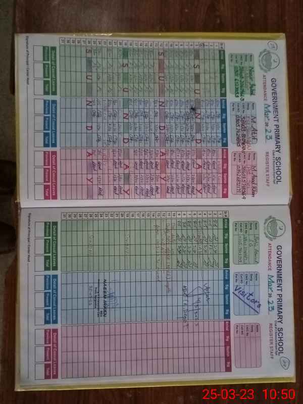 | Name: NA**** IQ**** AH**** Designation: (School Headmaster's/Headmistress's) PST Phone/Cell Number: 03**** |