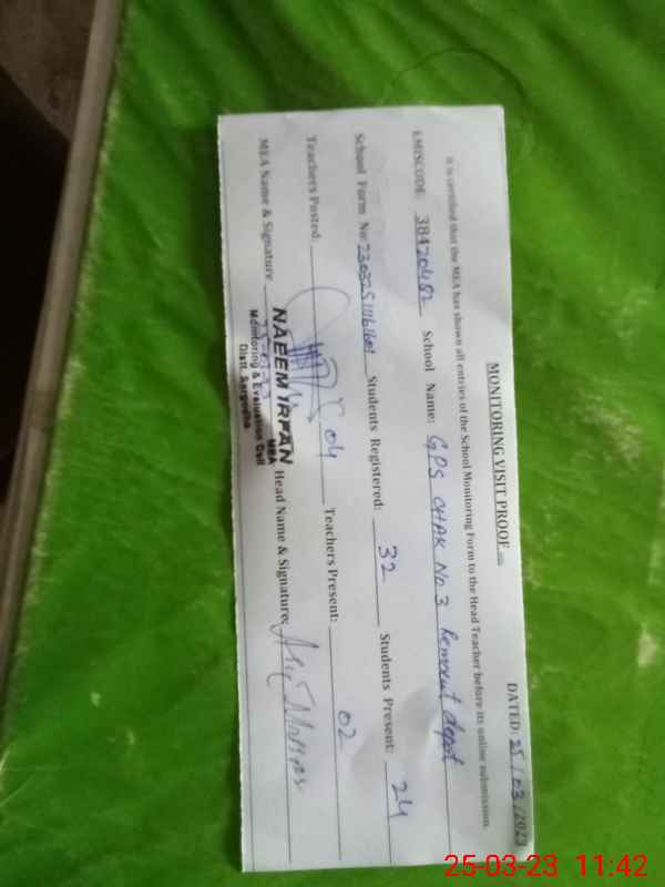 | EMIS Code: 38420482 | Name of School: GPS CHAK NO.3 REMOUNT DEPOT | |||