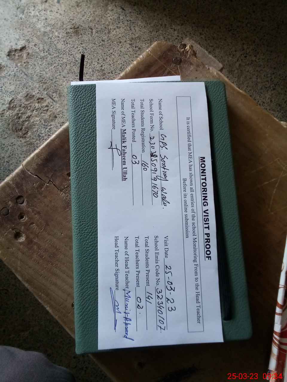 | EMIS Code: 32340107 | Name of School: GPS SONTRAY WALA | |||