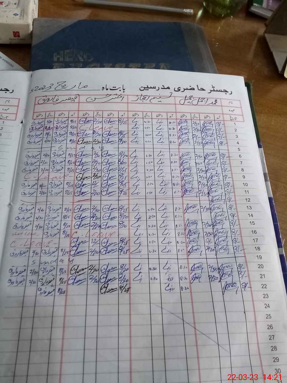| CNIC | Full Name | Designation | R/C | Absence During Last Calender Month |