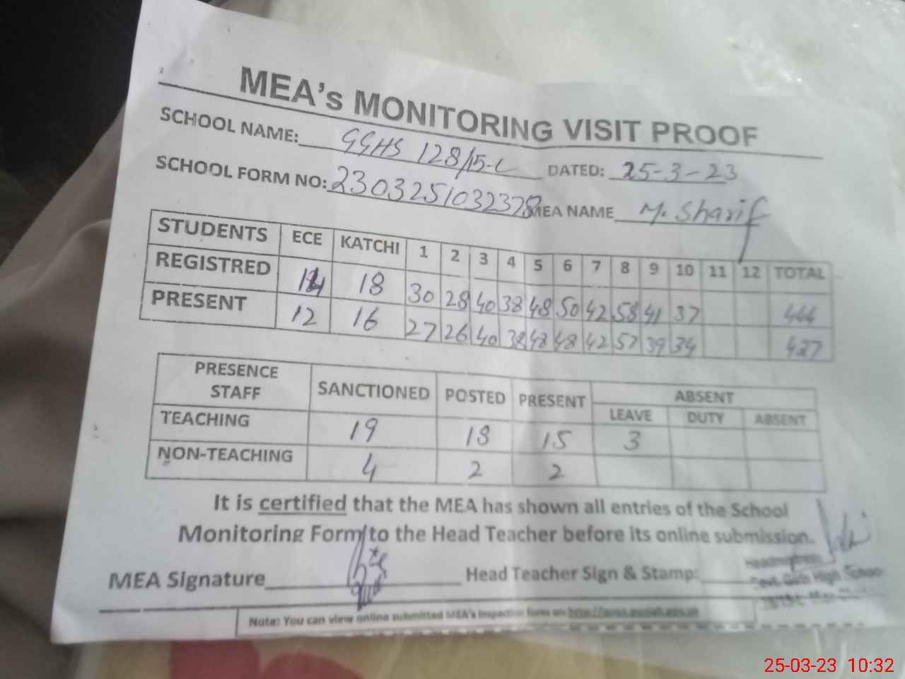 | EMIS Code: 36430097 | Name of School: GGHS 128/15-L MIAN CHANNU | |||