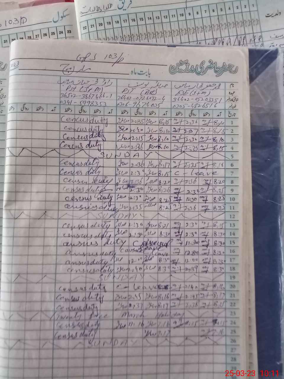| CNIC | Full Name | Designation | R/C | Absence During Last Calender Month |