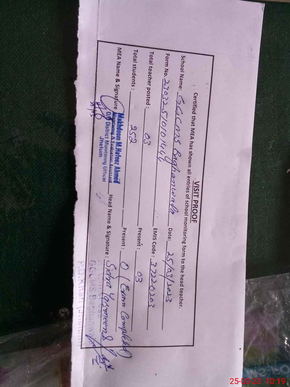 | EMIS Code: 37220203 | Name of School: GGMCMS BAGHAN WALA | |||