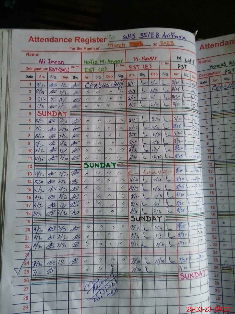 | CNIC | Full Name | Designation | R/C | Absence During Last Calender Month |
