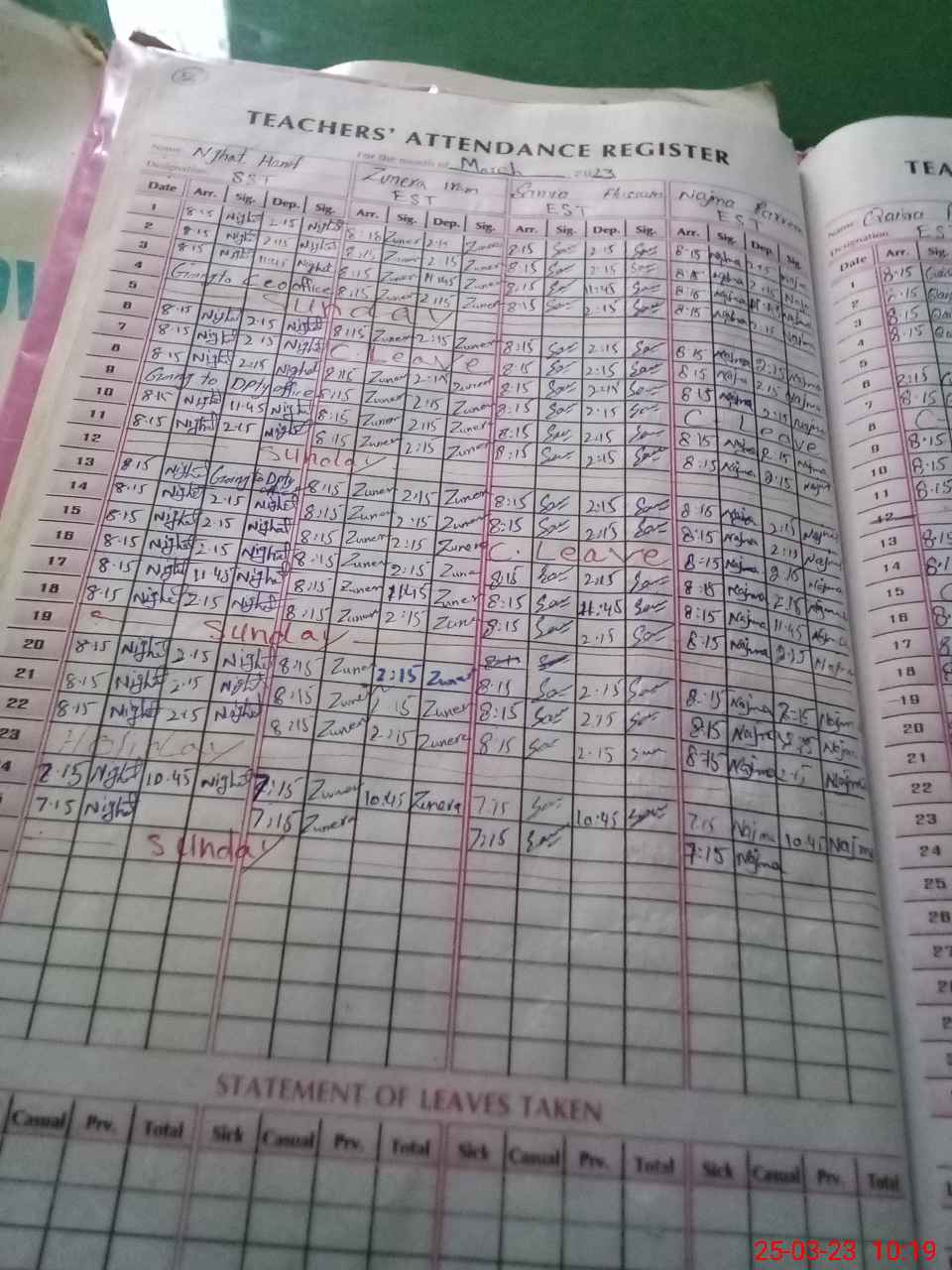 Leave Type | Remarks for today (Leave,Training, Exam,Absent,Late, Other duty) |