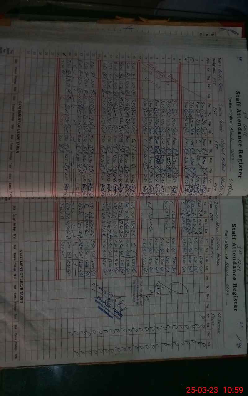 | CNIC | Full Name | Designation | R/C | Absence During Last Calender Month |