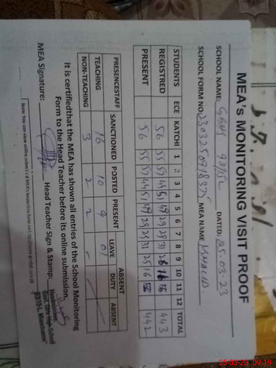 | Certified that this School was Inspected by the Undersigned MEA/DMO Today and the Information Stated Above is as Per Record. | |||||