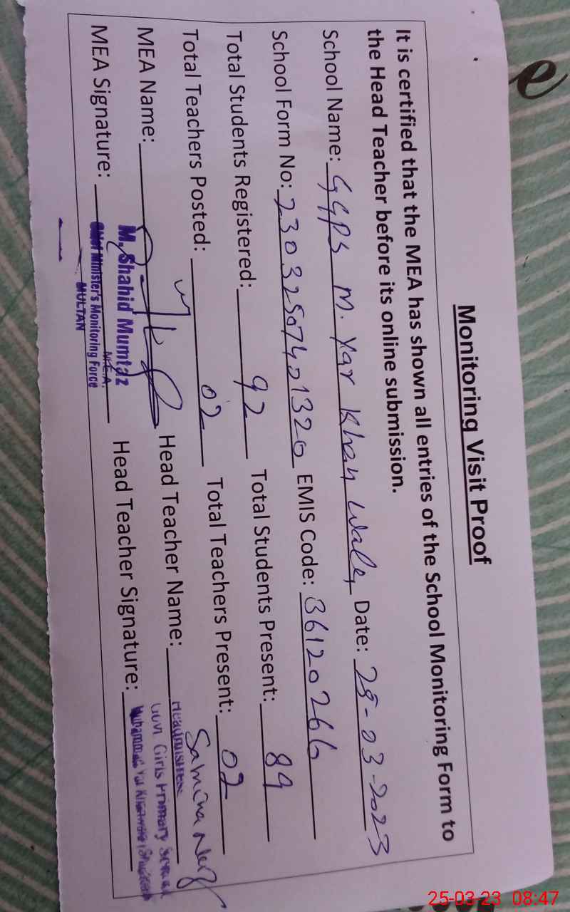 | EMIS Code: 36120266 | Name of School: GGPS MUHAMAD YAR KHAN WALA SHUJABAD | |||