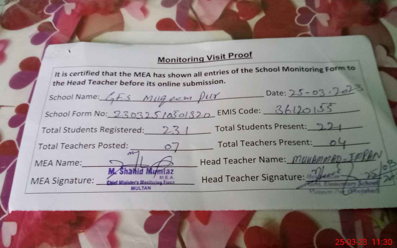 | EMIS Code: 36120155 | Name of School: GES MUQEEM PUR P/O MATOTLI SHUJABAD | |||