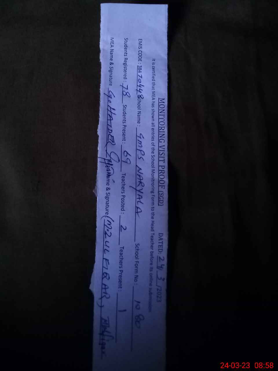 | EMIS Code: 38470448 | Name of School: GMPS NARYALA | |||