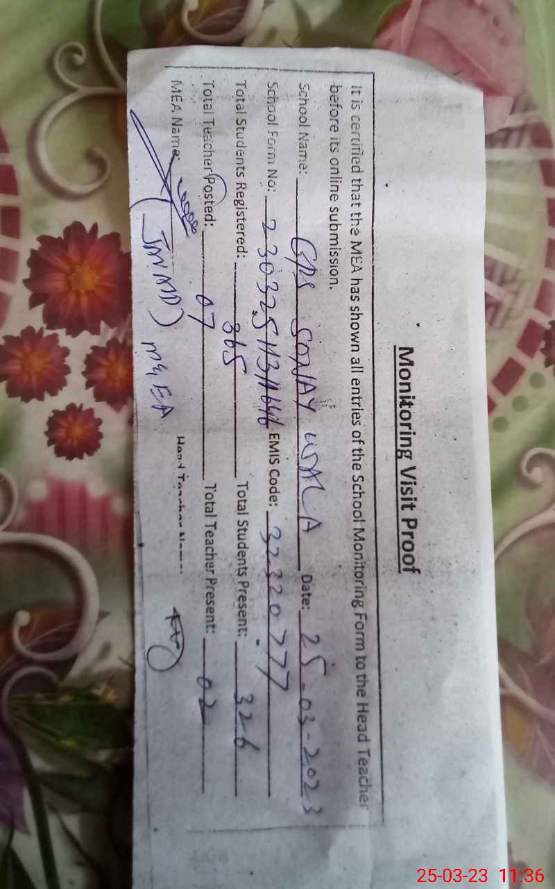 | Attendance Register | Head Teacher | MEA with School | Visit Proof |