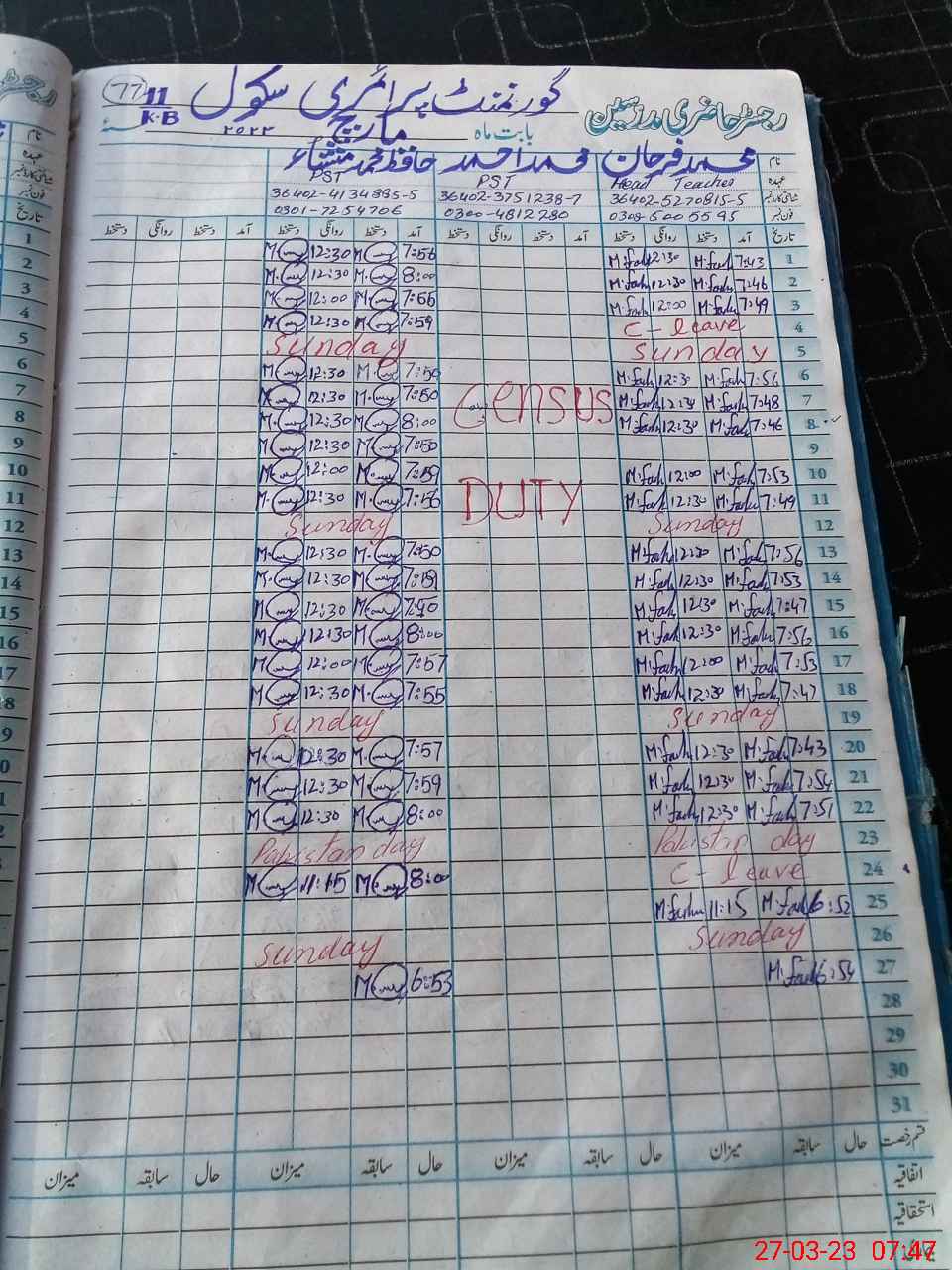 | Name: MAh**** Designation: (School Headmaster's/Headmistress's) PST Phone/Cell Number: 03**** |