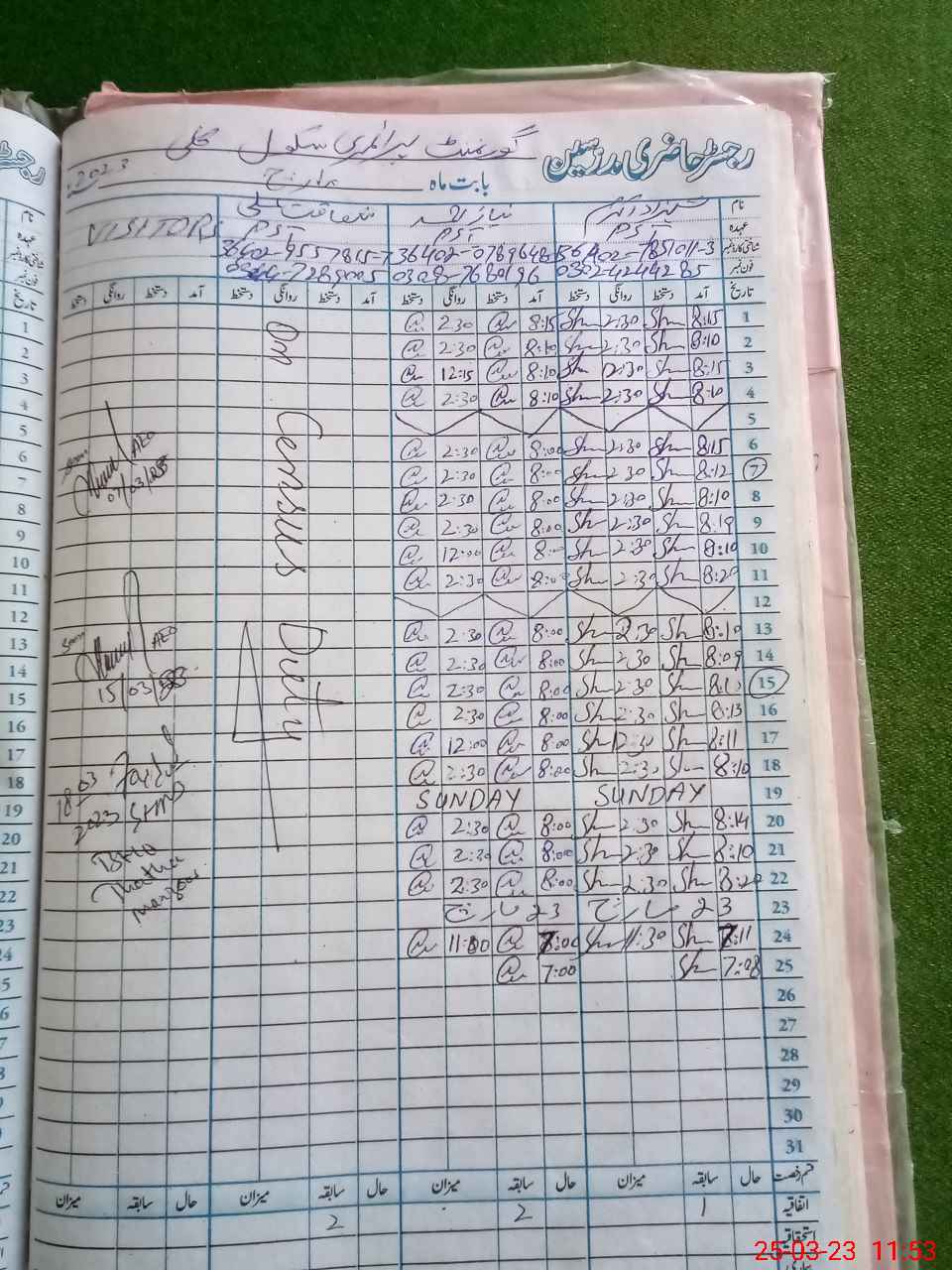 | Name: SH**** AK**** Designation: (School Headmaster's/Headmistress's) PST Phone/Cell Number: 03**** |