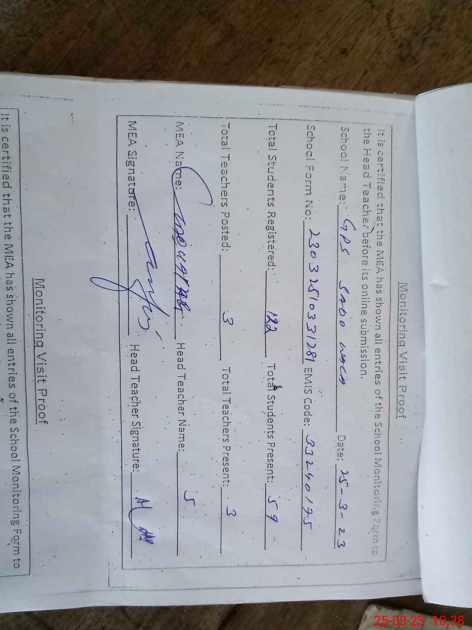 | EMIS Code: 33240175 | Name of School: GPS SABOO WALA | |||