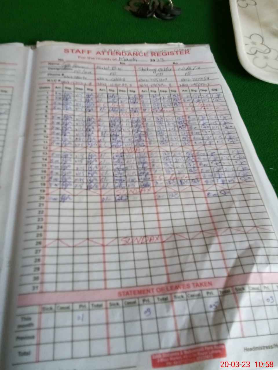 | Name: SA**** PE**** Designation: (School Headmaster's/Headmistress's) PST Phone/Cell Number: 03**** |