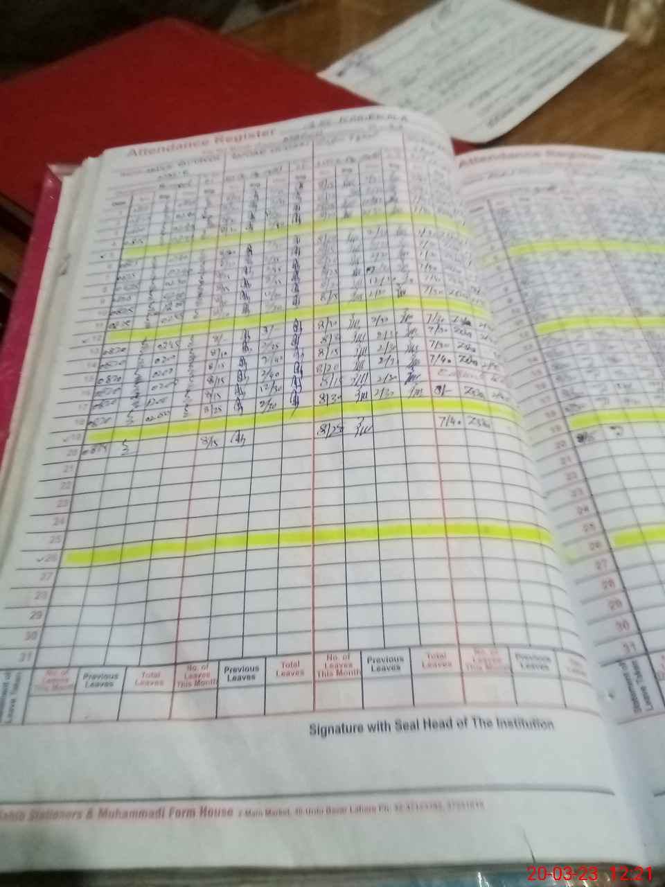 | CNIC | Full Name | Designation | R/C | Absence During Last Calender Month |