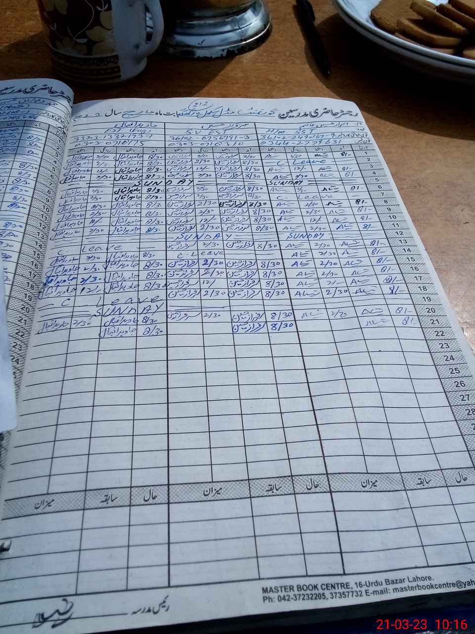 | CNIC | Full Name | Designation | R/C | Absence During Last Calender Month |