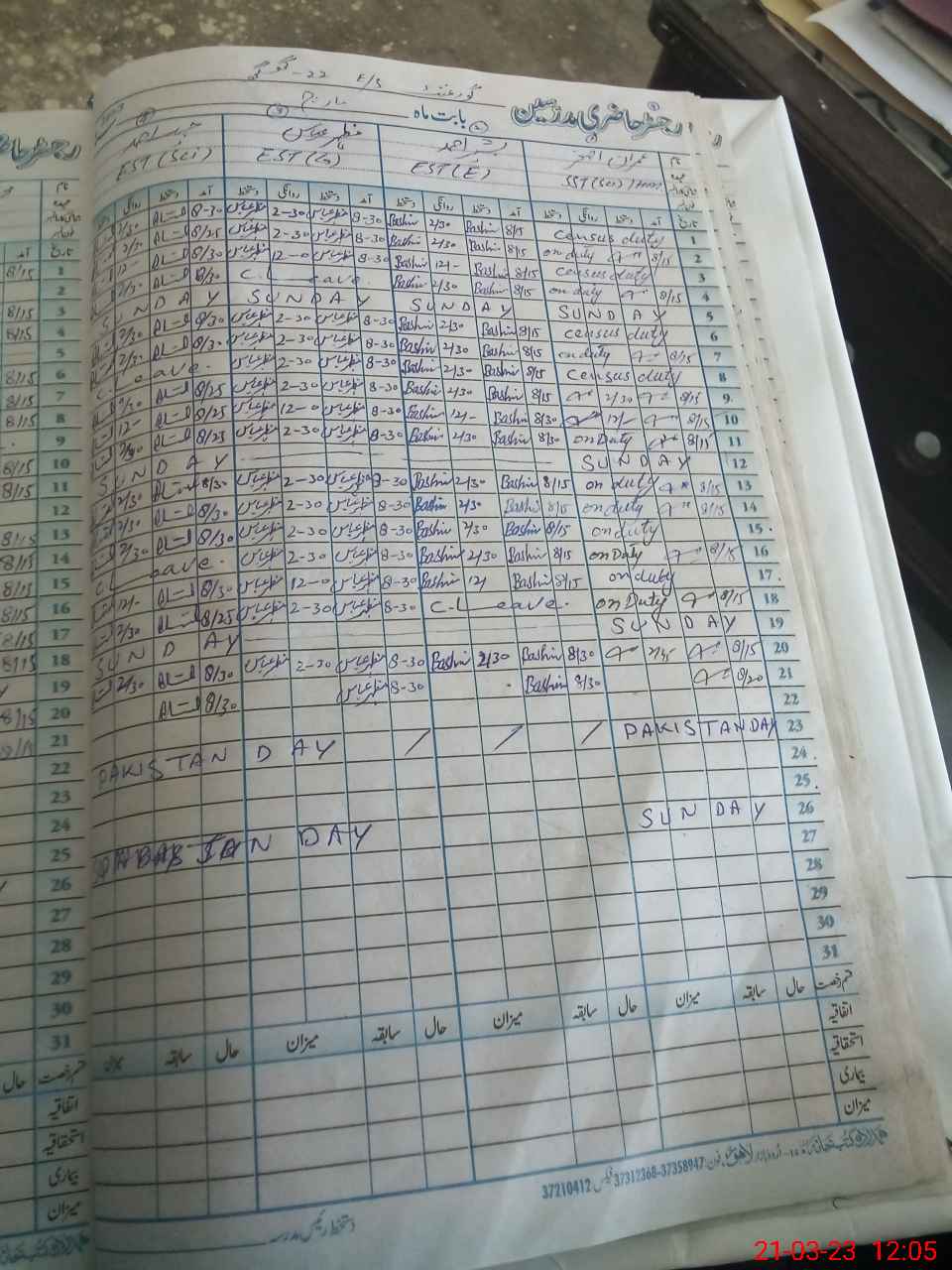 | Name: Mu**** Ra**** Designation: (School Headmaster's/Headmistress's) SST (G) Phone/Cell Number: 03**** |
